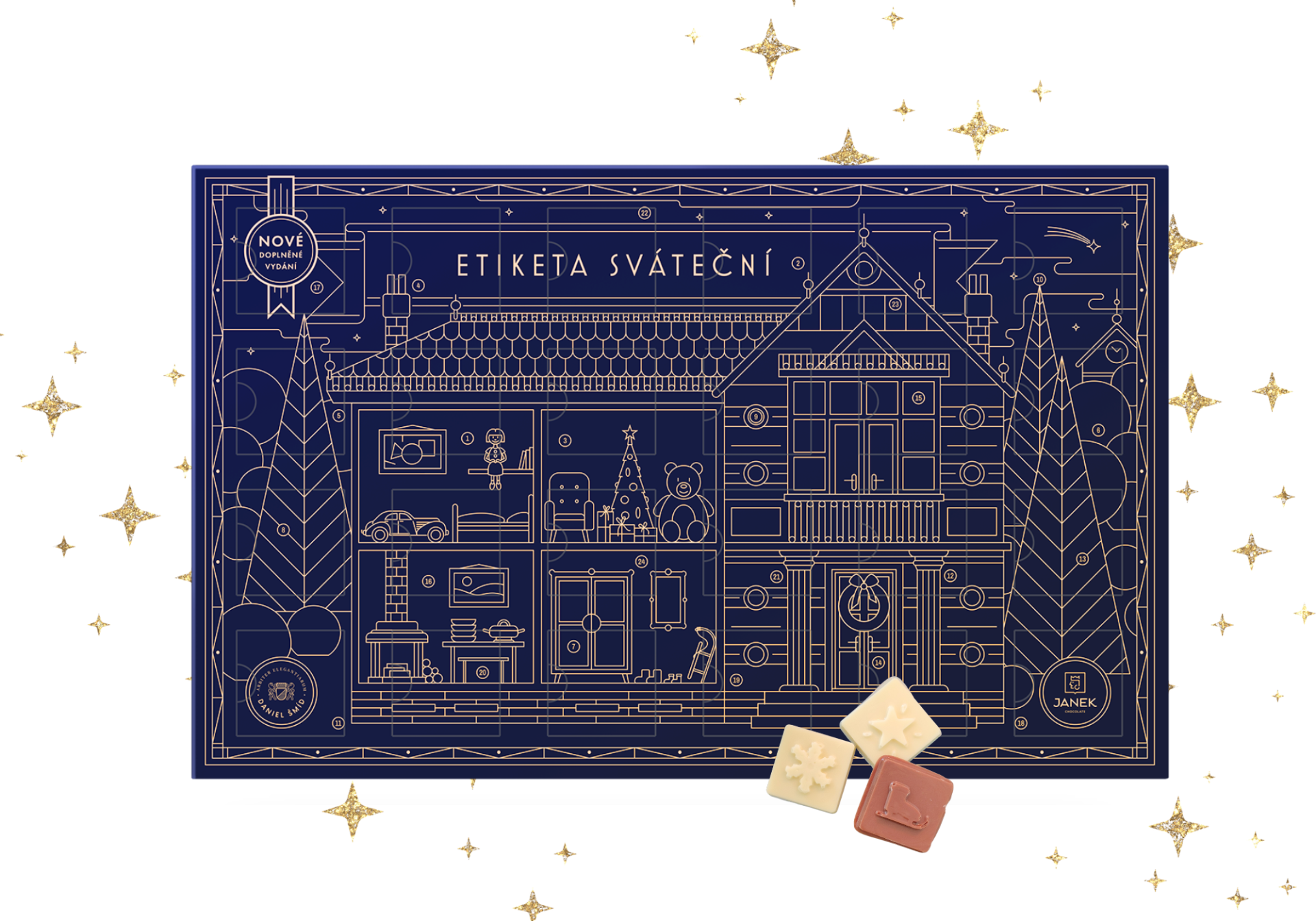 Za každým otevřeným okénkem najdete vynikající čokoládu ve dvou druzích a k tomu veledůležitou radu k slavnostní etiketě kolem Vánoc: