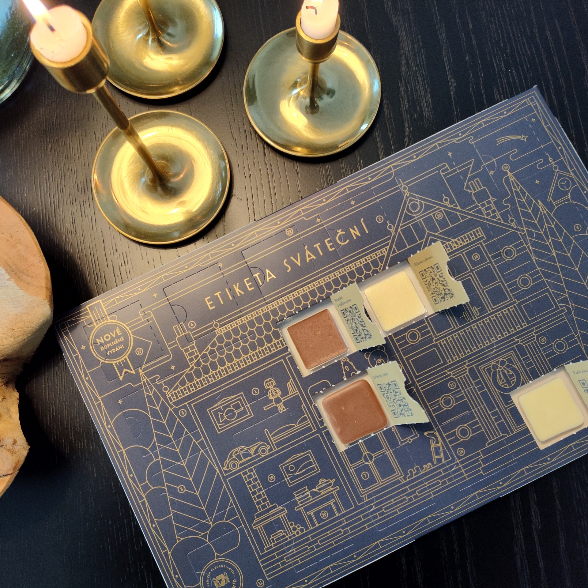 Za každým otevřeným okénkem najdete vynikající čokoládu ve dvou druzích a k tomu veledůležitou radu k slavnostní etiketě kolem Vánoc.