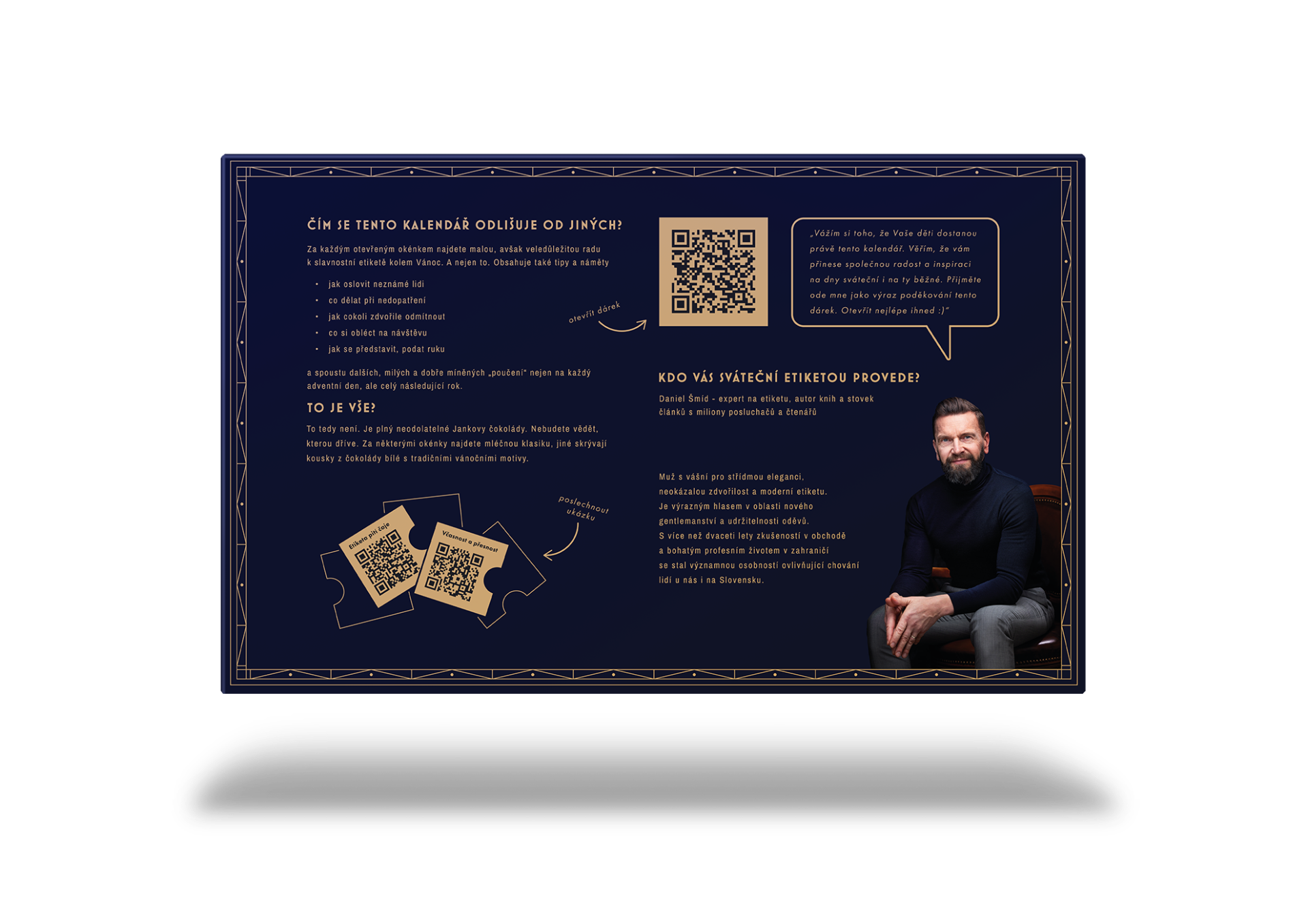 Výsledek? Sebevědomé děti, které umí slušně vystupovat v každé situaci. Není to jen adventní kalendář. Je to roční kurz etikety v kapse. 24 dnů učení = 365 dnů využití.