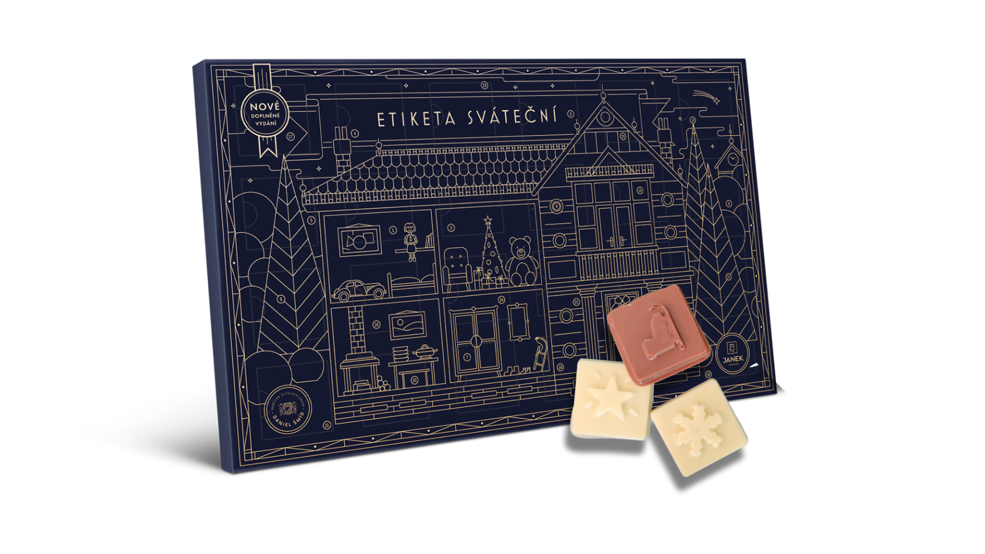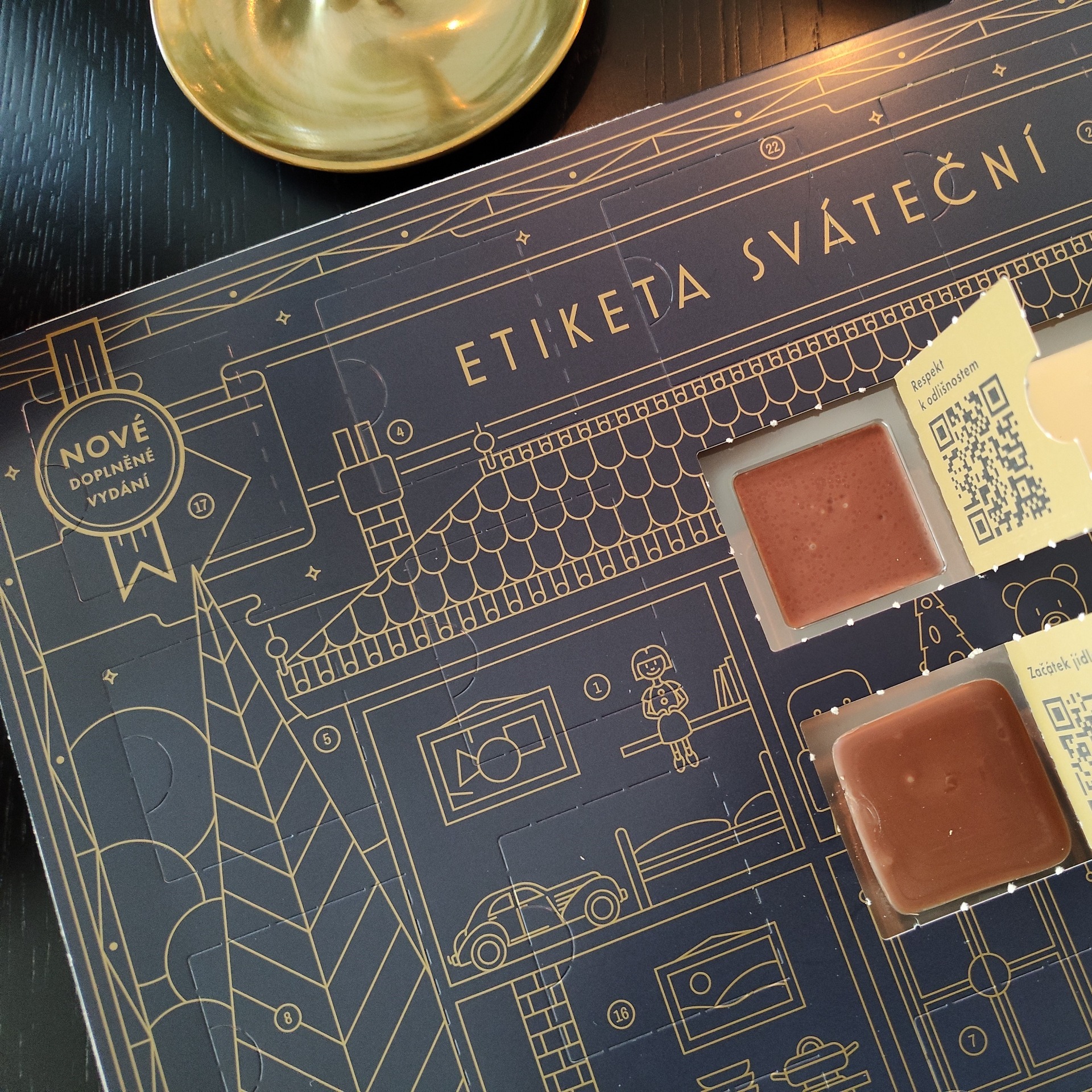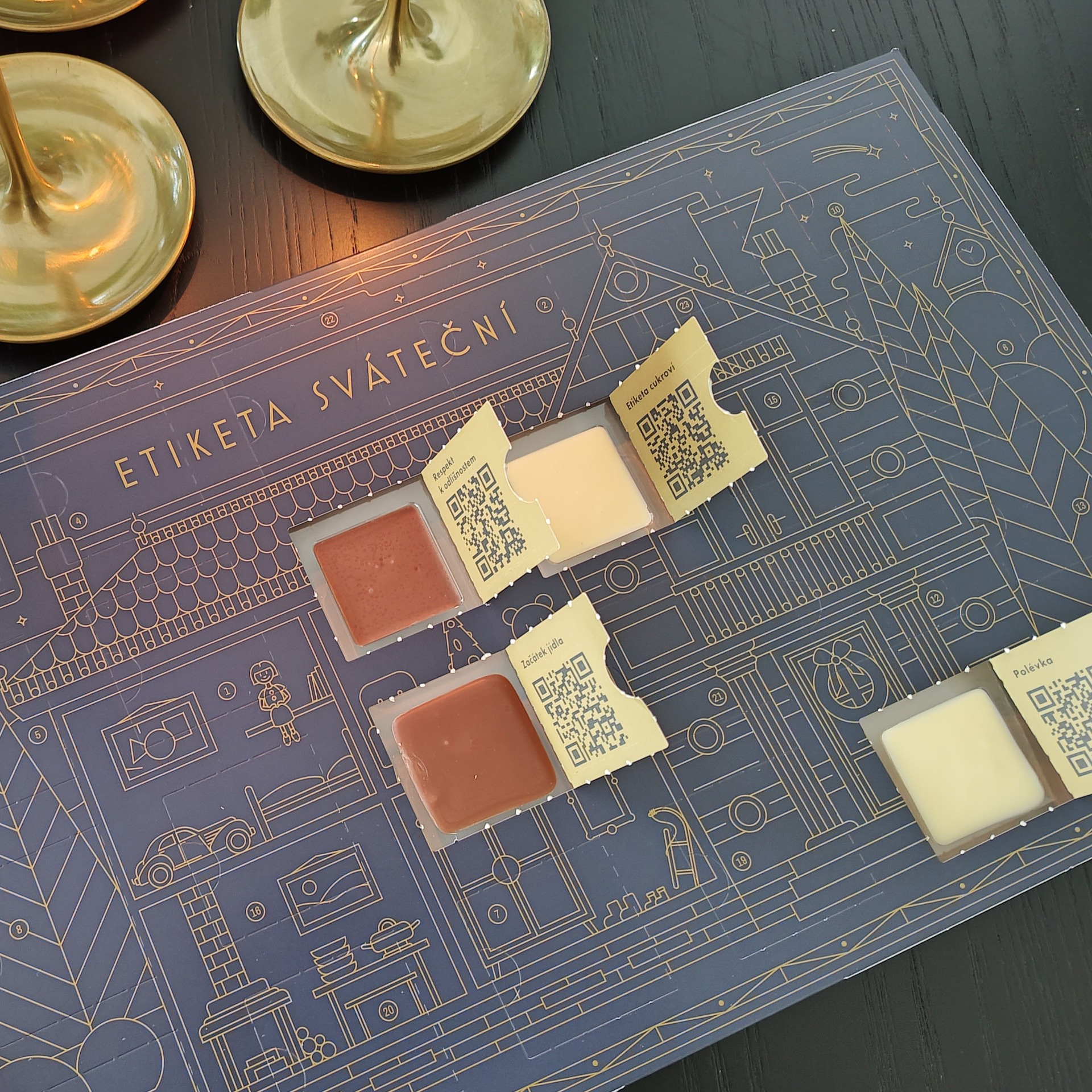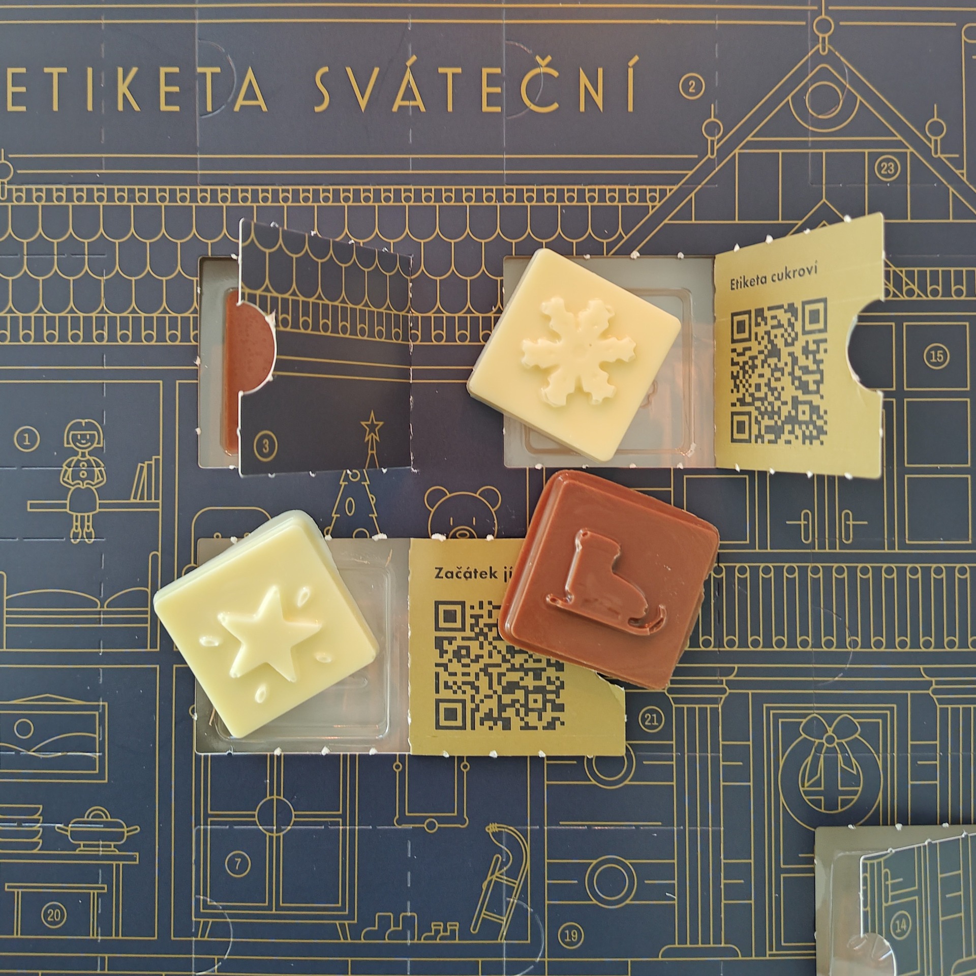 Za každým otevřeným okénkem najdete vynikající čokoládu ve dvou druzích a k tomu veledůležitou radu k slavnostní etiketě kolem Vánoc.